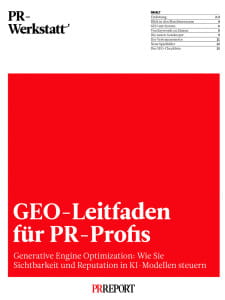 PR Report berichtet als professioneller Begleiter für Profis über aktuelle Geschehnisse, Personen und Kennzahlen aus der PR- und Kommunikationsbranche. Die Werkstatt erscheint als Beilage von PR Report.
